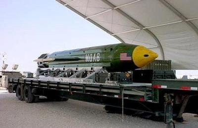 "炸弹之母"是指美军GBU-43大型空爆炸弹,这是美军研制的新型大型燃烧空气炸弹,又被称作"大型空爆炸弹",根据其英文缩写"MOAB",美国给其取名为"炸弹之母"。