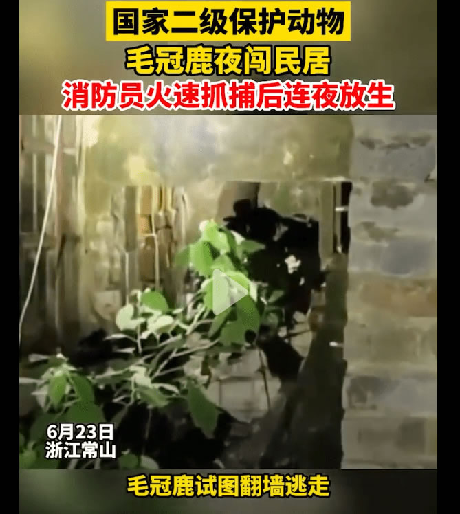 工作人员表示,之所以会进入民宅,是因为毛冠鹿非常敏感,容易受到惊吓。可能由于当时村里人太多了,导致这只毛冠鹿慌不择路,最终闯入了民宅之中。