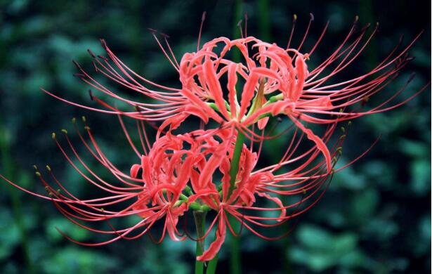 彼岸花又被叫做曼珠沙华,相传彼岸花是开在黄泉路上的花,彼岸花一半阴一半阳,据说彼岸花开不见叶,彼岸花的花也叶永远不相见,所以民间认为,彼岸花有着生死不相见的寓意,彼岸花是民间经典的鬼花。