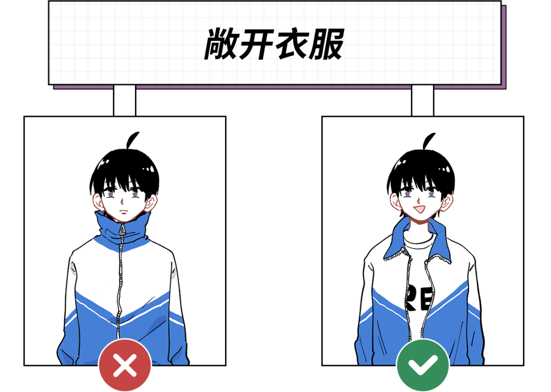 在春秋季,你可以直接将校服敞开穿,这也会让你看起来更瘦,因为这是利用了视错觉原理。