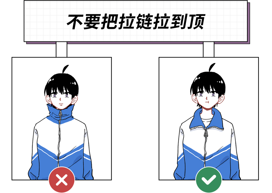 3. 不要把拉链拉到最顶端