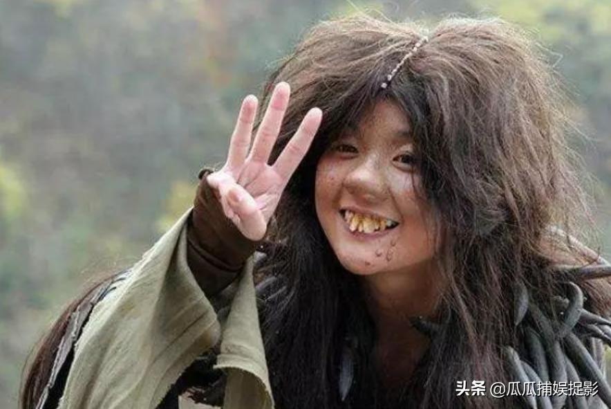 大龅牙、眯眯眼、奇奇怪怪的断眉、一脸大麻子,彻彻底底颠覆了自己原本的形象。如果不是演员表里写着倪妮,很多人第一眼真没瞧出来是她,称得上是“毁容式”扮丑了。