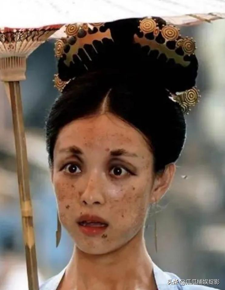 这是蔡卓妍在《情癫大圣》里面扮丑,让人终于深刻领会了什么叫做面目全非。龅牙仿佛成了香港电影扮丑的标配。这次又外加了枯黄得像稻草的鸡窝头,超大的猪头鼻,扮相简直让人不忍直视。
