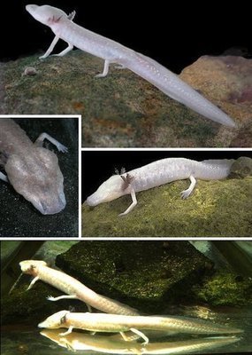 它是洞穴动物,没有眼睛,接触外界主要通过灵敏的嗅觉和触觉。