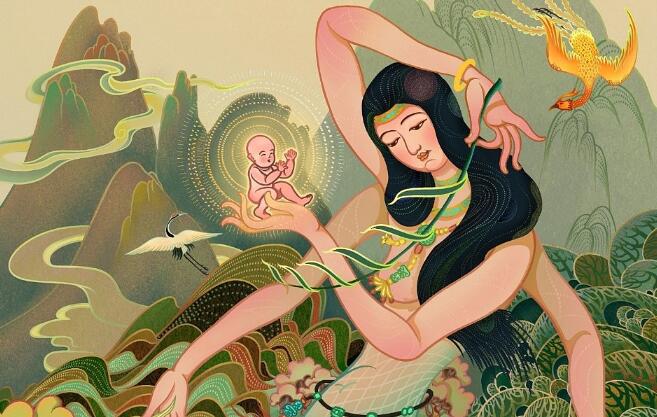 1、女娲是一位善良的神,她不仅造人,女娲还创造了瑟、笙簧、埙等中国的传统乐器。人们最为动容的应该是女娲补天的故事。