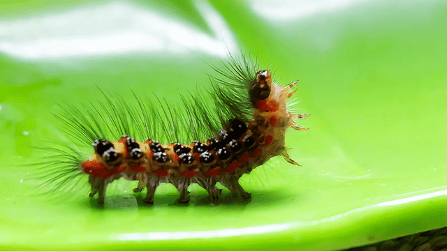 目前已知毛毛虫的种类约有112000种,行动都缓慢,拥有三对胸足,腹足和尾足大多为5对,也就是8对腿16只脚,有些毛毛虫可以使人毙命。