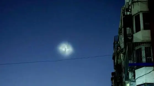 当摄像的人跌跌撞撞下来后,这两个火球又腾空而起。这两个大火球有几道从里面向外的辐射光束,没有任何声息,来无影去无踪。