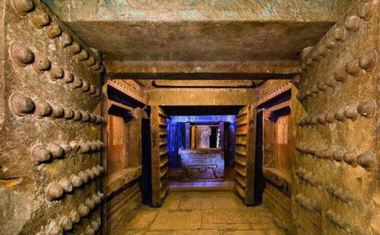 这时候,他们看见墓室门口竟然有一个守门宫女!这个宫女身着彩衣,站在那里一动不动,盗墓贼一看,以为是宫女的雕塑,就径直往里走去。走进了一看,竟然是一具干尸!几个人吓了一跳,没见过干尸能站着的,但毕竟盗墓的胆子大,直接绕过干尸就进了主墓室。