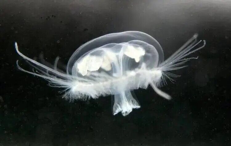 渊宿水母,外观酷似胎盘?答案是;没错。渊宿水母由于没有触手,使人们以为它是海洋哺乳类动物的胎盘,不过,进一步研究发现,其虽无触手,但照样能捕食。