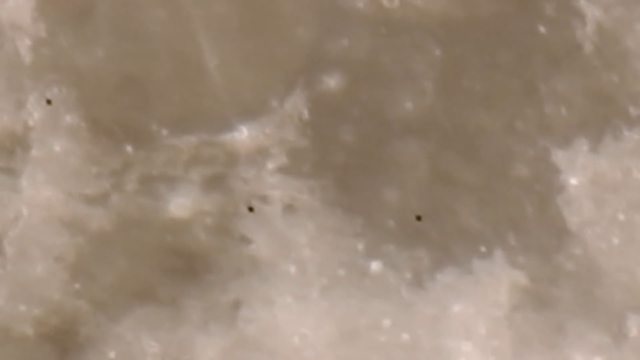 与其类似的是在2019年5月的一天晚上,一位俄罗斯摄影师正准备拍摄天空中的满月,就在他聚精会神的调焦时,忽然发现了三个椭圆的黑点在月球上略过,结果,当他将画面放大时,却发现了更多类似的黑色物体。
