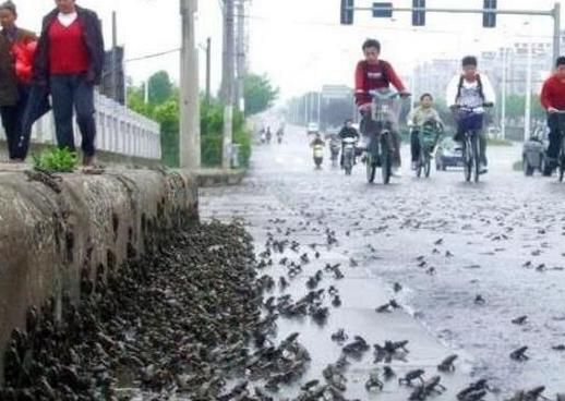 是指下的雨有蟾蜍,而在蟾蜍中心的地方,每平方米就有90只至110只的蟾蜍。