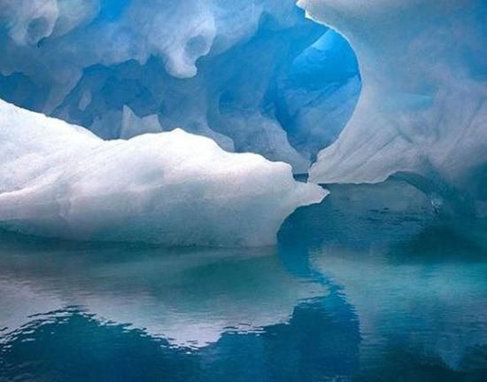 巨大无比的淡水冰山在地内两极形成后,通过庞大的水路流出,形成地表两极的大淡水冰山。