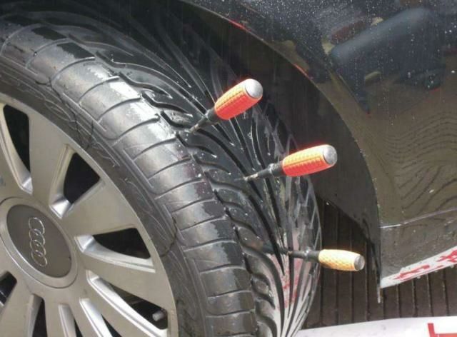 2、轮胎平放,人站在上面,胎边硬的是防爆,手一摁就软的是普通轮胎。