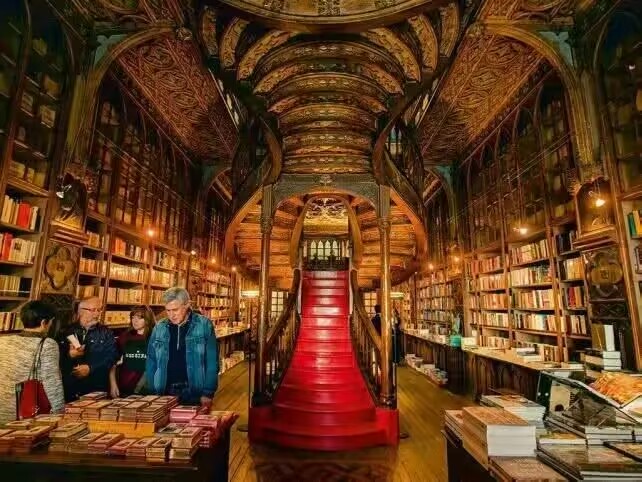 这家书店的建造奇特,拥有着如梦幻盘旋的哥特式木质楼梯,再加上有彩色玻璃的穹顶加持,一看就很让人心动,都恨不得能够立马飞奔到这家书店,既能饱览群书,又能欣赏到如此充满艺术的建筑,何乐而不为呢?