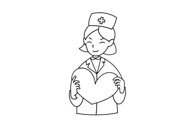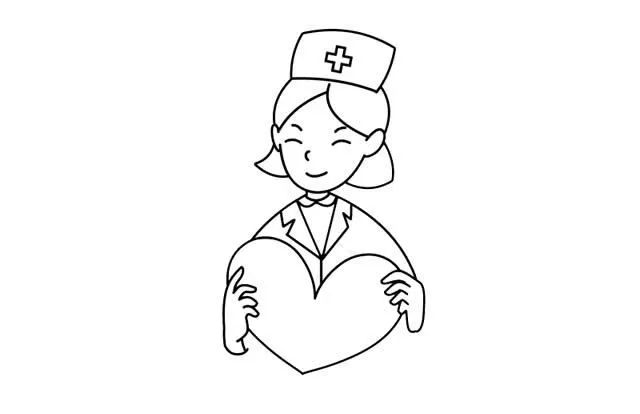 画出白衣天使的双手和手里的爱心。