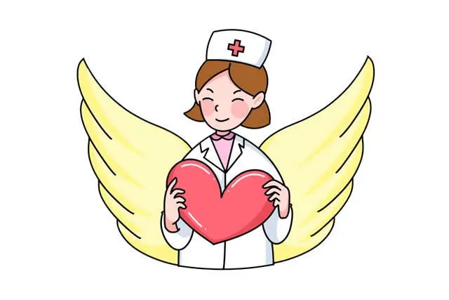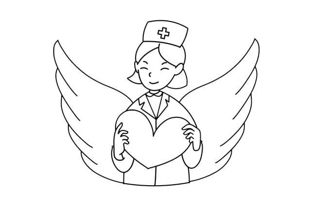 在白衣天使身后画出一双翅膀。