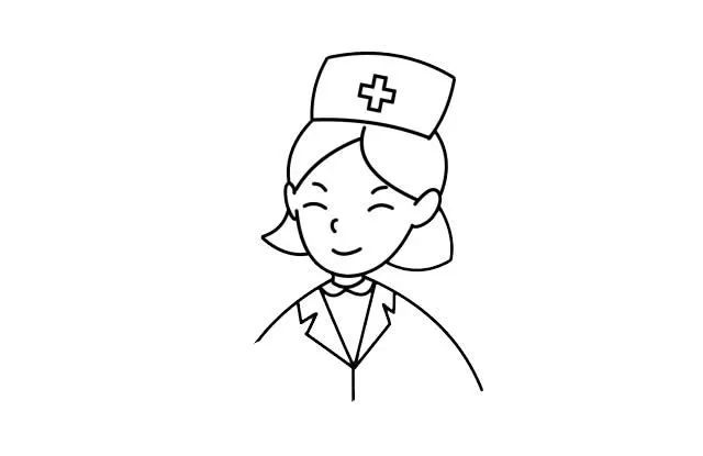 先画出白衣天使的头部线条和头上的帽子。