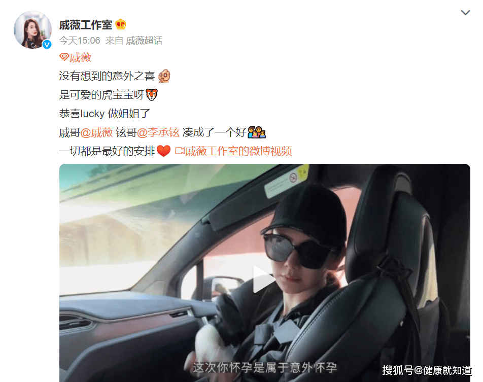 3、而随后戚薇工作室也正式官宣她顺利生下二胎,并配文写道:“没有想到的意外之喜,是可爱的虎宝宝呀”,还恭喜lucky做姐姐了。