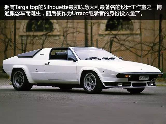 有几分形似那款令世界跑车巨子们惊诧不已的“世纪经典超跑”兰博基尼Countach,但也仅仅因为Countach是Silhouette的前辈罢了。拥有Targa top(一种因首次采用于保时捷1966年款911 Targa而名声大噪且流芳万世的可拆卸顶棚) 的Silhouette最初以意大利最著名的设计工作室之一博通概念车而诞生,随后便作为Urraco继承者的身份投入量产。