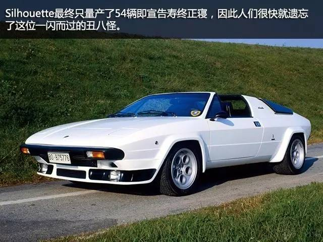 显然,兰博基尼对Silhouette的前景是充满信心,只可惜事与愿违。Silhouette最终只量产了54辆即宣告寿终正寝 ,因此人们很快就遗忘了这位一闪而过的丑八怪。而它对后世唯一的贡献便是其最后一台量产车被当作Jalpa的原型车用于测试与研发。兰博基尼真可谓物尽其用。