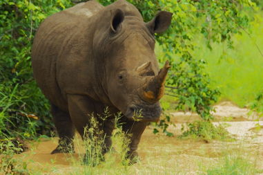 犀牛也是比较强壮的动物之一,而且拥有两个独角,并且犀牛的皮肤也是比较厚实的,所以尽管老虎拥有锋利的牙齿,对于犀牛来说攻击力有所减弱。