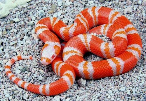 奶蛇是美国的一种蛇,看起来光滑明亮,就像刚涂抹过一身牛奶一样。而这种蛇也确实是在美国比较热门的一种宠物蛇,很受欢迎。