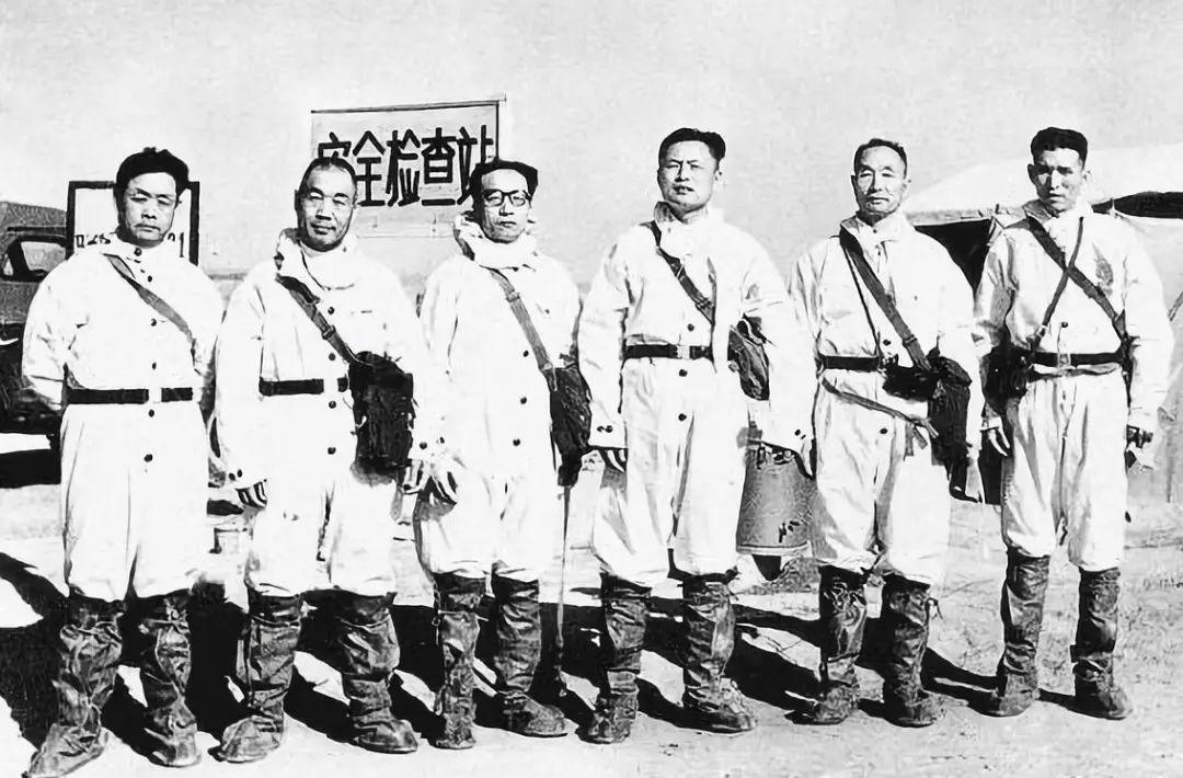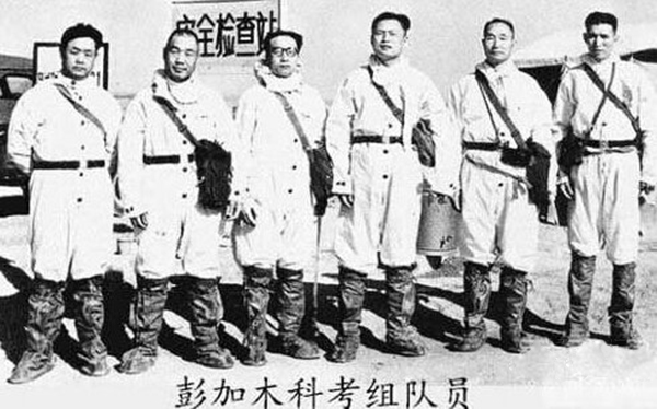 彭加木科考组成员,戴眼镜站中间的就是彭加木6月16日傍晚,他们终于艰难地来到罗布泊东岸库木库都克。