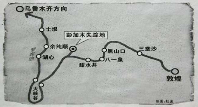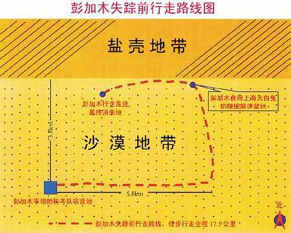 彭加木失踪前行走路线可找到太阳落山,也没有彭加木的身影。