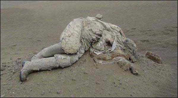 两年后,人们在一陡坡下发现3具卧干尸。