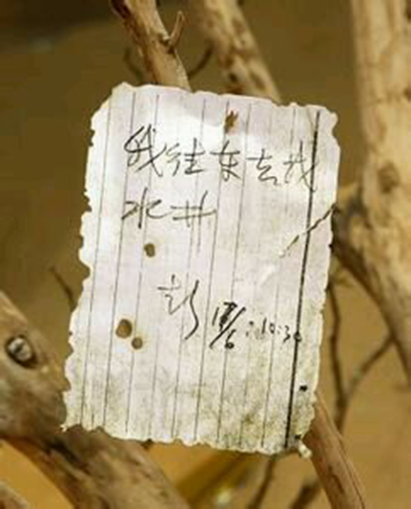 然而,就是这一句“我往东去找水井”,却成了世人难解的7字之谜!疑惑重重 脚印清晰叹难寻得知老队长一人留下纸条去找水,此时的队员们还没有着急,只有生气,埋怨他为什么给全队立的规矩“不准单人行动”,自己却不遵守,还带头违犯?大家在附近看了看,心想,天这么热,他走不了多远,最多找上个把钟头,找不到就会回来了。