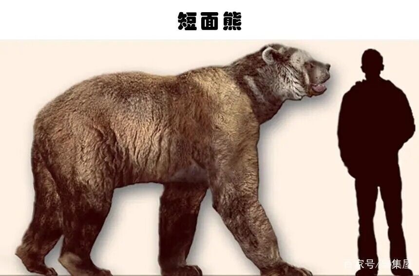 短面熊不是说它的脸短,而是说它的鼻子要比现代熊短许多而得名。它在世时可是美洲大陆最可怕的掠食者,它无比凶残也就罢了,还挑食,不吃植物只吃肉,据科学家研究发现,成年短面熊一天至少需要摄入16公斤的肉。据传,很可能是因为它的存在,导致当时在美洲大陆上并没有发现人们的踪迹。