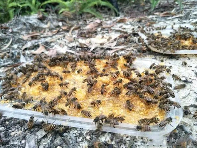 此法一般都是在蜜蜂较少时才使用的,因为这个方法操作起来有一定的技术含量,需要让有养蜜蜂经验的人来操作。首先准备一个碟子一些新鲜纯蜂蜜,到野外找寻一个可能有蜜蜂出没的山脚,然后将新鲜纯蜂蜜倒入碟中,也可以在附近树叶和花朵上喷上一点,过不了多久就会有蜜蜂嗅到香味赶来,等到他们飞回蜂巢中,会告诉自己的同伴,接着来到此地的蜜蜂就会越来越多,等他们回去的时候我们就可以跟着他们找到他们的老巢了。
