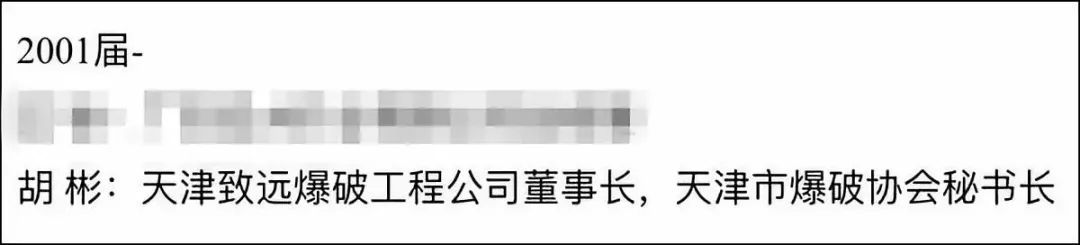 爆破项目的施工单位董事长正是该校2002级弹爆专业的学生,胡彬。在安徽理工大学的官网上,他被评为“优秀校友”。