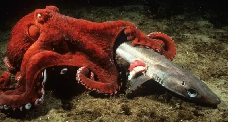 太平洋巨型章鱼是目前已知最大的章鱼,寿命也最长。据传,一旦惹它发怒,它甚至可以把一整只船都掀翻。不过只要人类不去伤害它,它自然也不会来伤害人类的。