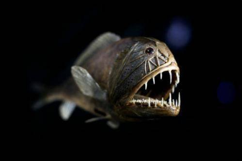 毒蛇鱼因其有着一双长着和毒蛇一样的牙齿而得名,它们非常了解深海中哪个区域的猎物比较多。每到夜深人静时,它们就会游到更浅的区域,因为那里的猎物种类更加丰富。
