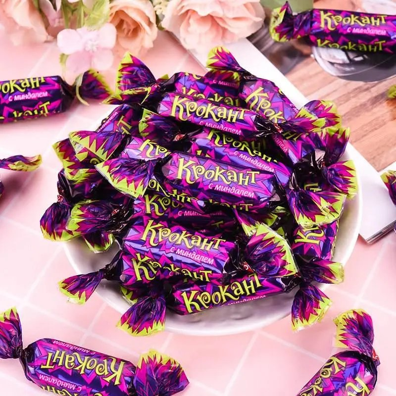 俄罗斯紫皮糖是近几年才开始热爆的,每次逢年过节,家家户户的桌上都会有这种糖果。他的外皮是巧克力里面是榛果夹心,吃起来很有层次感口感极佳,非常好吃。