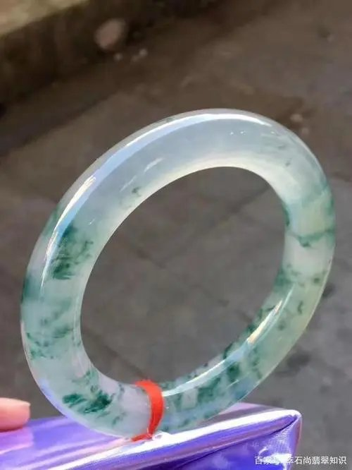 2、玻璃种带翠手镯