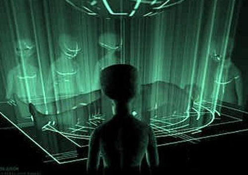 在检查了他们的双眼,并且用一个铅笔大小的光棒检查了他们的嘴巴后,那些外星人将他们放在一个四胄中,收缩他们的胳膊和腿部。