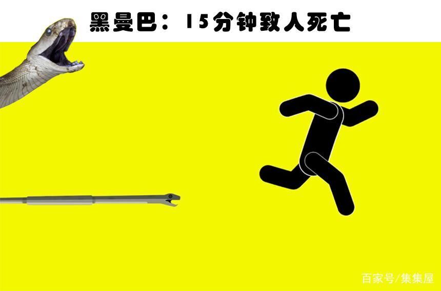 这种蛇类的爬行速度很快,每小时大概可以挪动20公里左右,一旦人们遇到这种蛇,是跑不掉的。这主要是因为人们的平均跑步速度大概是在每小时10到16公里左右,怎么样都跑不过黑曼巴蛇。所以可以近似的说是碰到这种蛇类,就大概是面临死亡了。