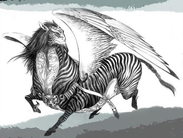 英招是一种马身人面虎纹鸟翼兽,居住在花园中,并为天帝看守花园。它参加了许多战争,保护和平,是华夏族和西戎部落的保护神之一。