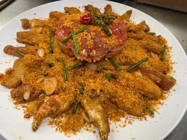 3. 炸帝王蟹:将帝王蟹切开去肥胖后用热油锅爆炸至金黄色即可食用,口感鲜美。